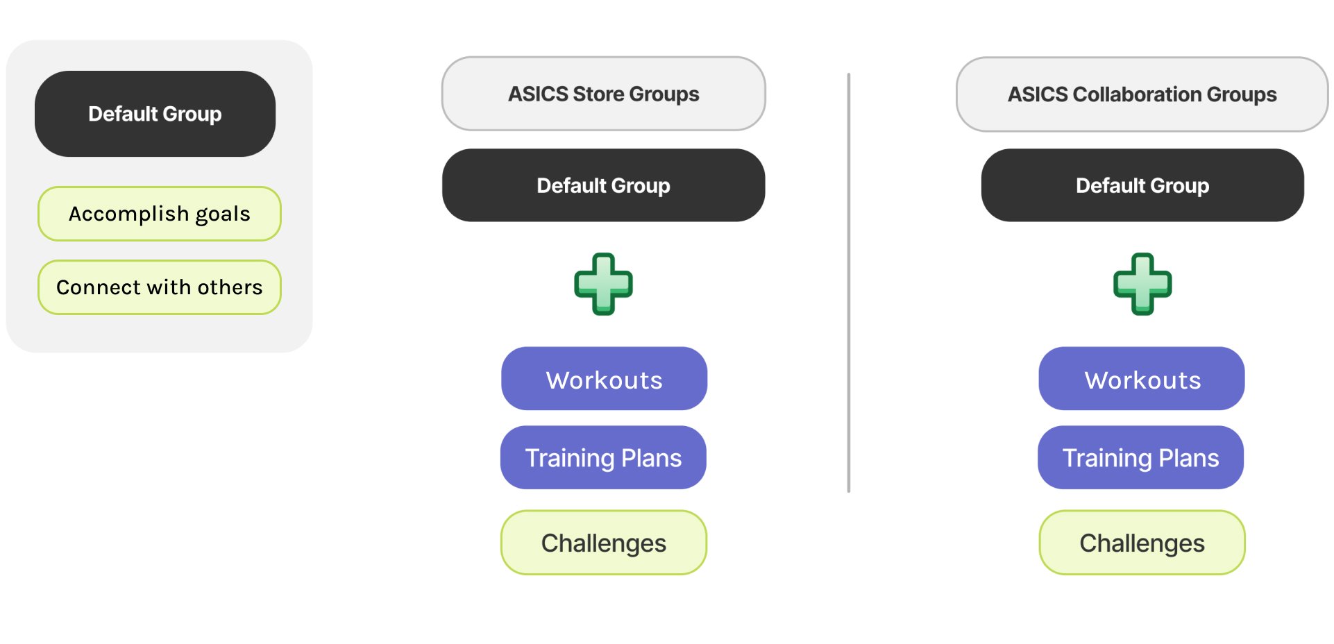 ASICS wanted a group to communicate with users, and we needed it to be flexible enough to allow us to leverage existing Runkeeper features later on.